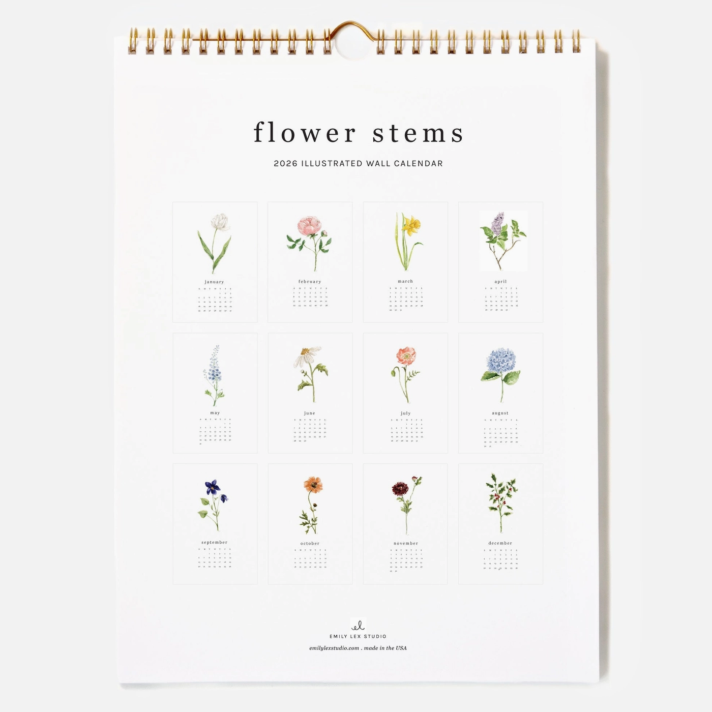 Enjoy a pretty flower stem for each month of the year! The Flower Stem Calendar features 12 watercolor flowers with the month and dates added for easy reference. The gold spiral binding and center notch makes hanging simple.
