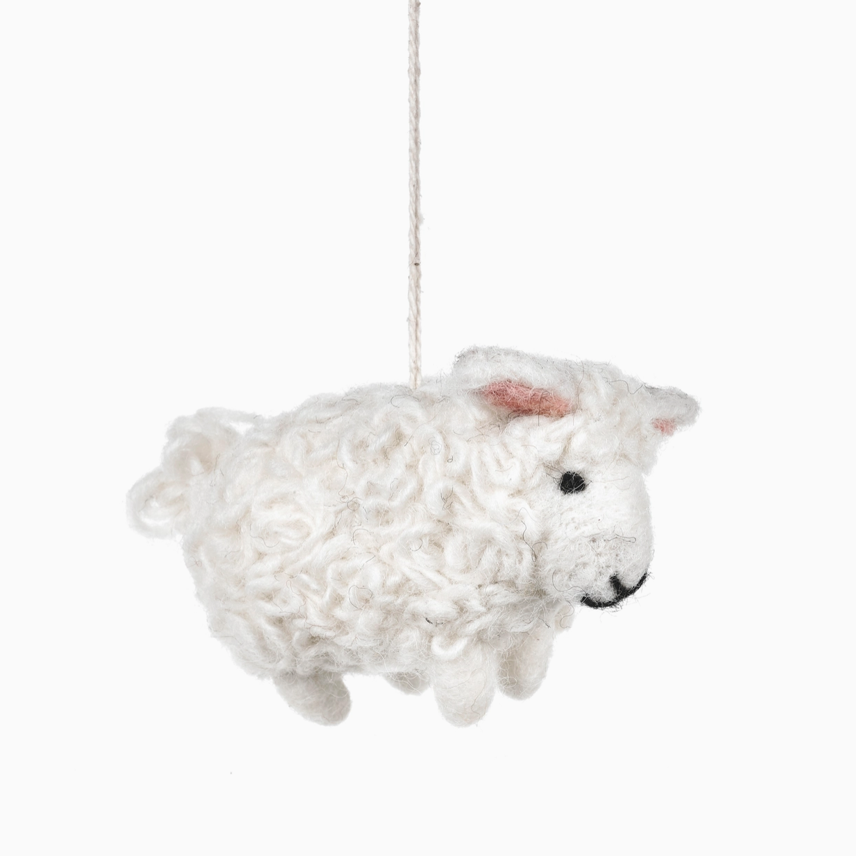 This sheep's fleece is made from natural, curly wool and her body are needle felted and is made from entirely biodegradable materials.
