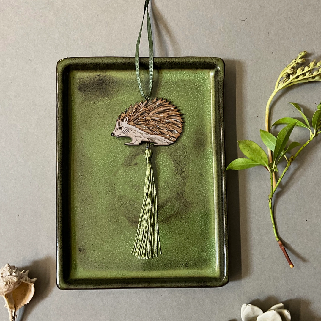 This hand painted Hedgehog tassel decoration, brings a touch of woodland joy to your home. With a flourish of laser etched illustrated details, and a frivolous tassel, this little fellow doesn’t have to be just for Christmas.