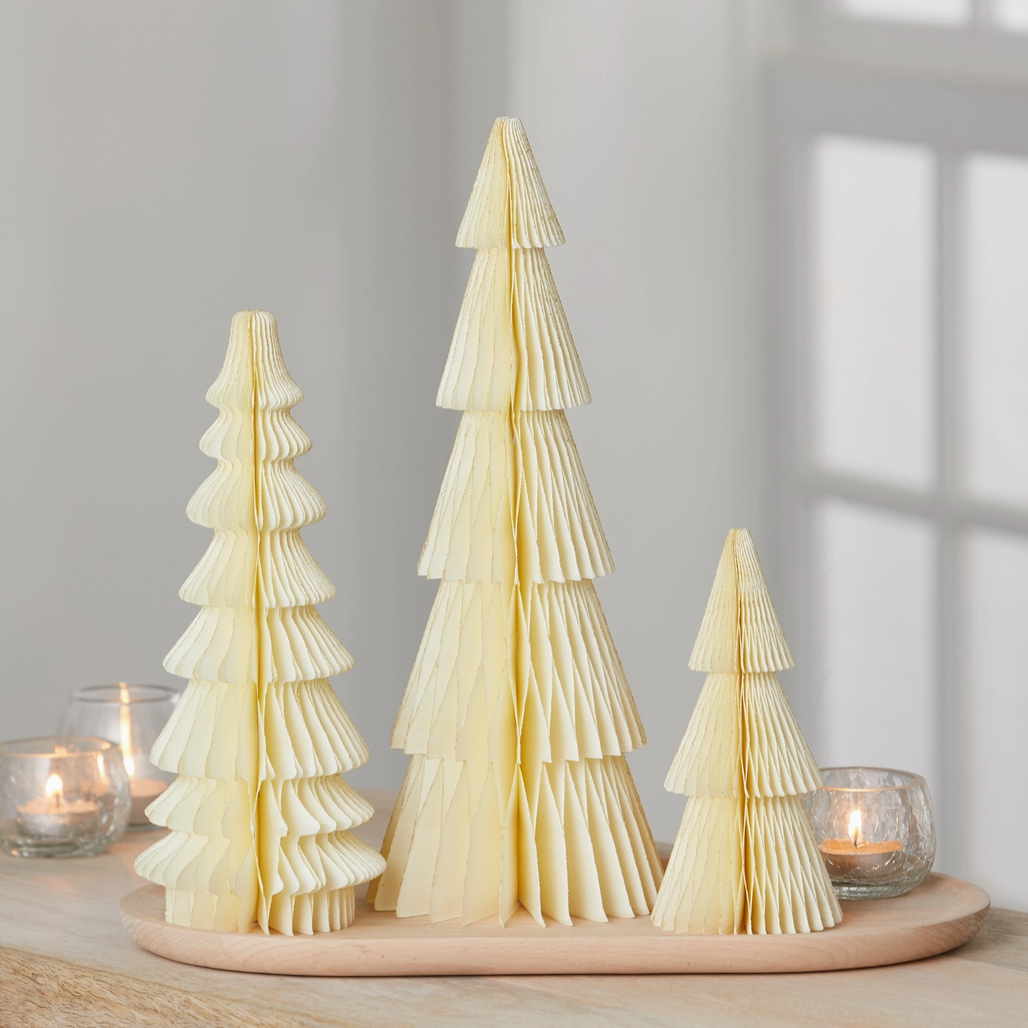Medium Set of 3 statement-sized trees range in height from 6.5 inches to 13 inches tall.