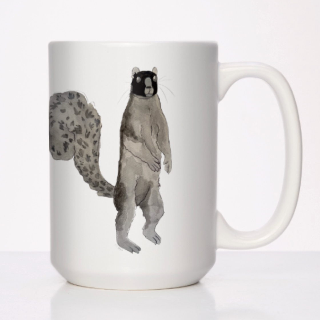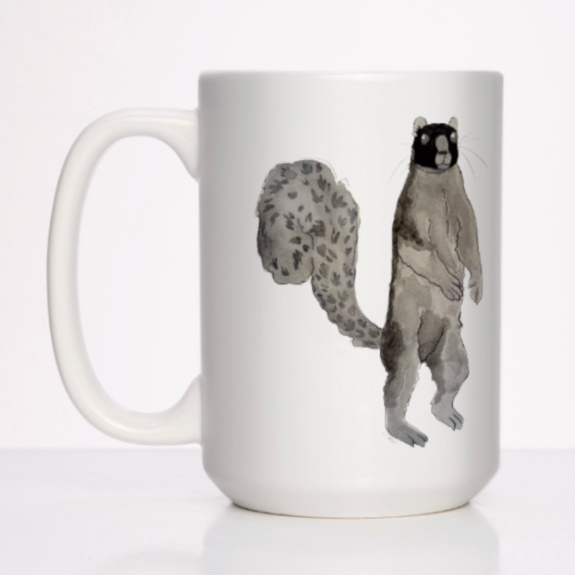 This watercolor portrait of a giant fox squirrel by artist Maddie Hart looks right at home on a 15 oz. coffee mug.