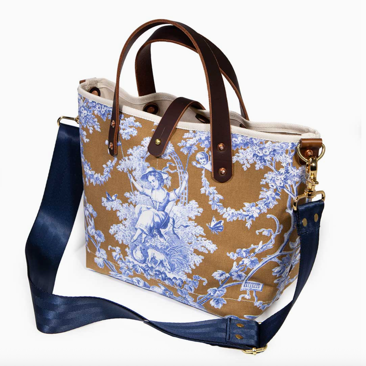 Sized more like a handbag but with design features similar to a tote, the Mini is perfect for stowing toys and treats for a walk with your dog, packing a lunchtime meal, or taking a book, water bottle, scarf, and sunglasses to the park.