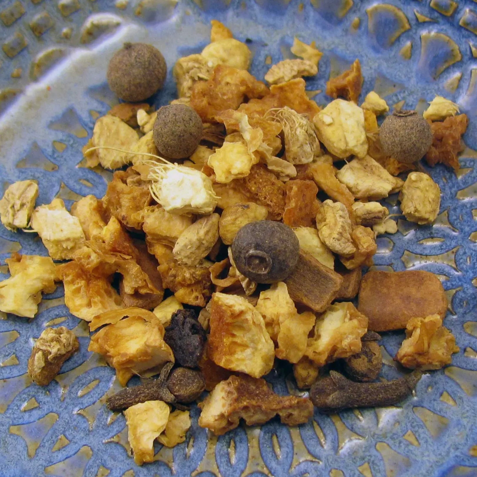Ingredients: Cinnamon sticks, cut ginger, ground nutmeg