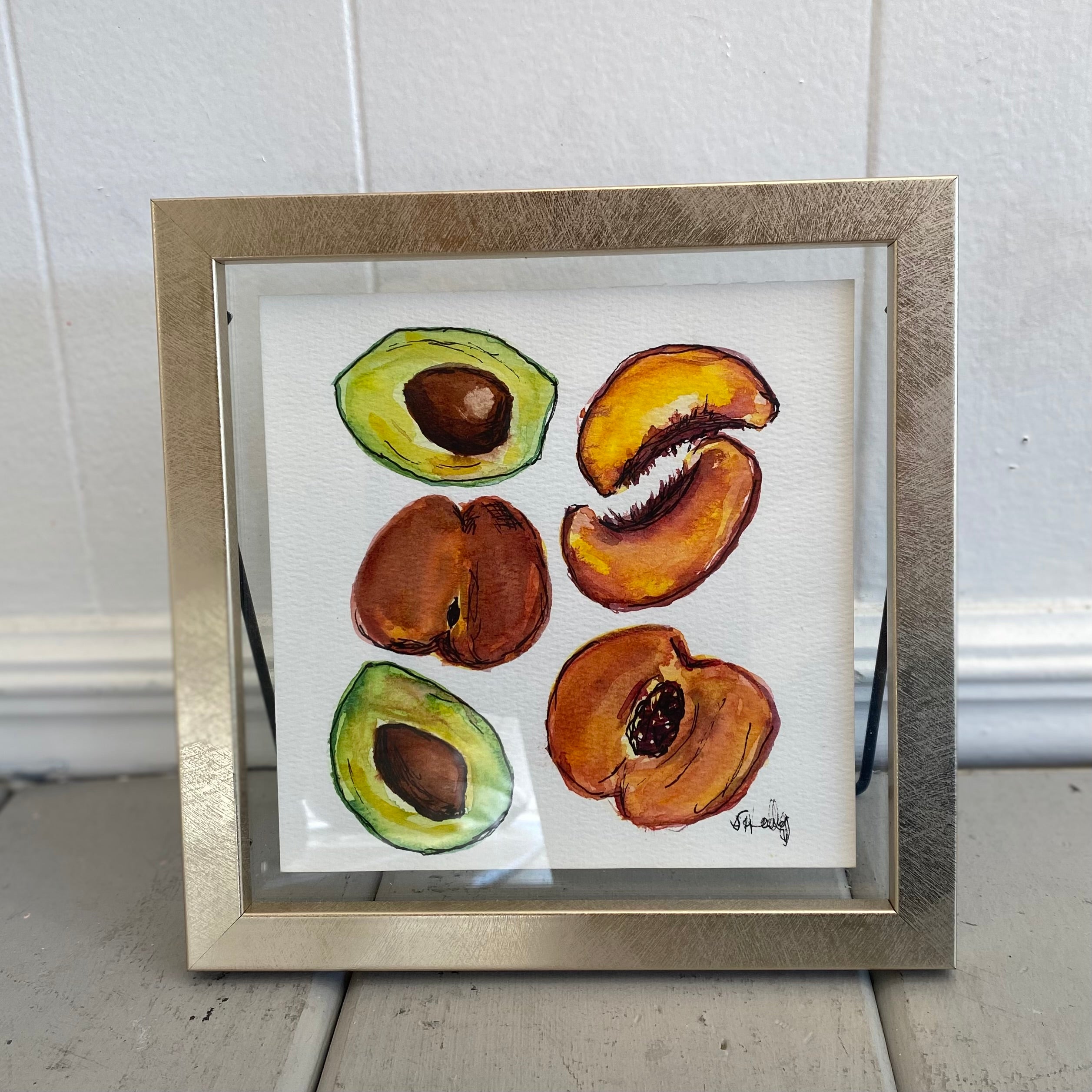 Peaches & Avocados 8x8 Painting by Sarah Healy