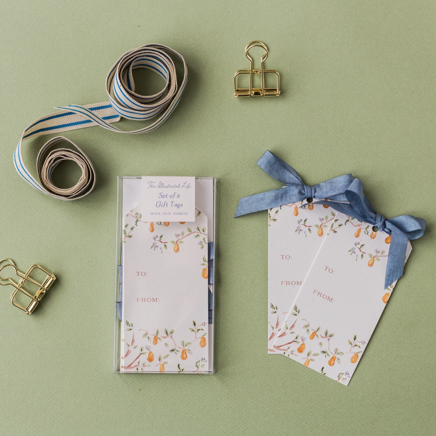 Pear Tree Gift Tags with Ribbon - Boxed Set of 8