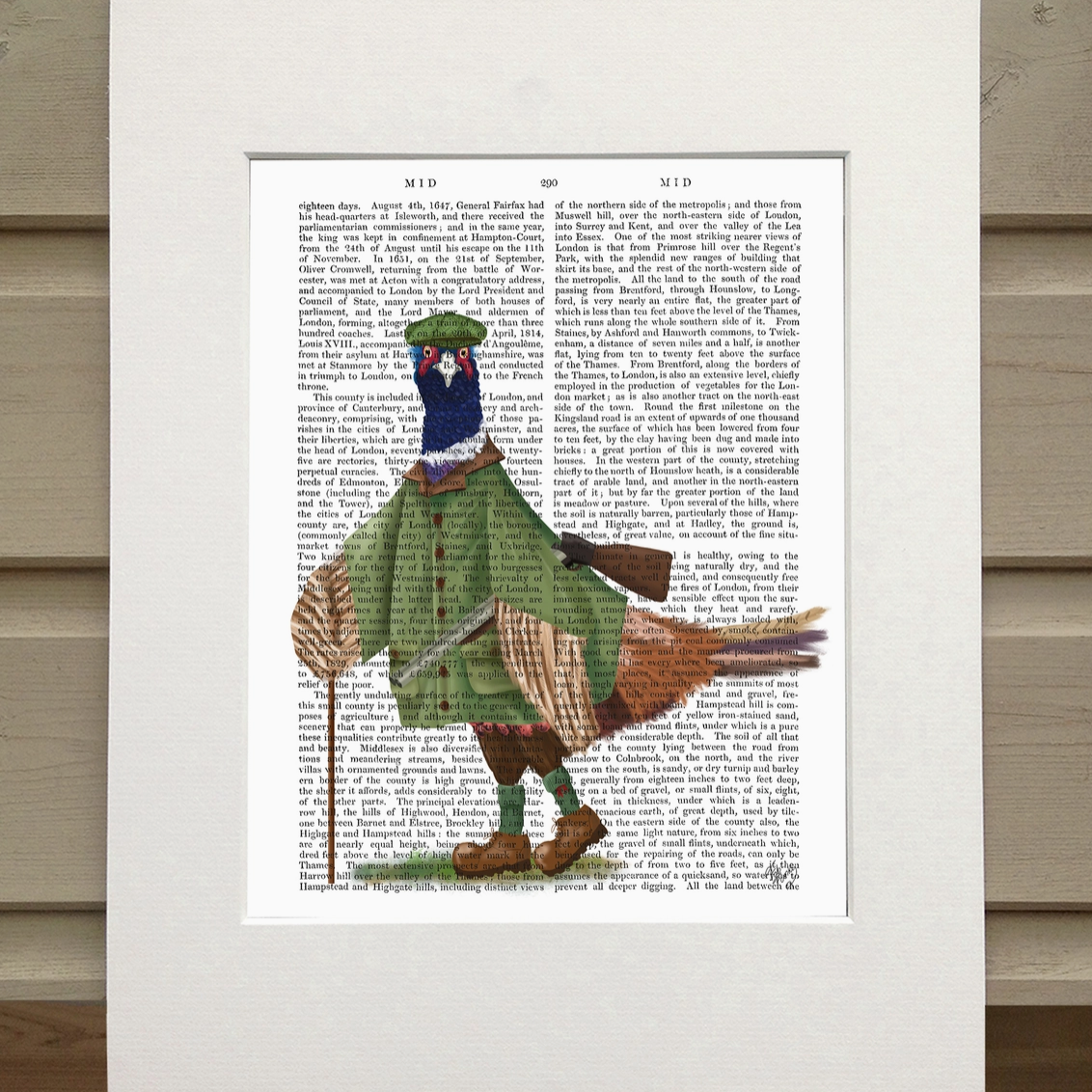 Imaginative illustration printed onto the page of an antique English book from the 1800s and beautifully matted, ready for framing.