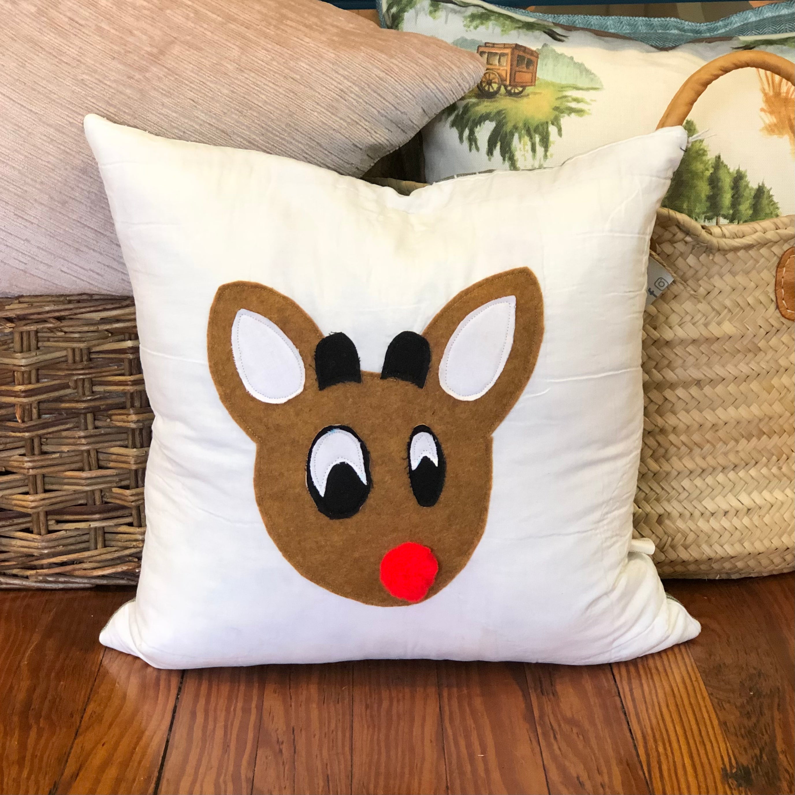 Tuckered Elephant Rudolph Pillow Red Striped Back