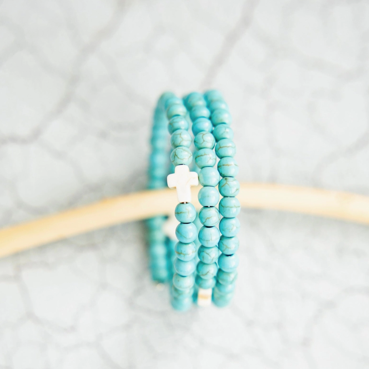 Turquoise Bracelet with White Cross by Rahab's Rope