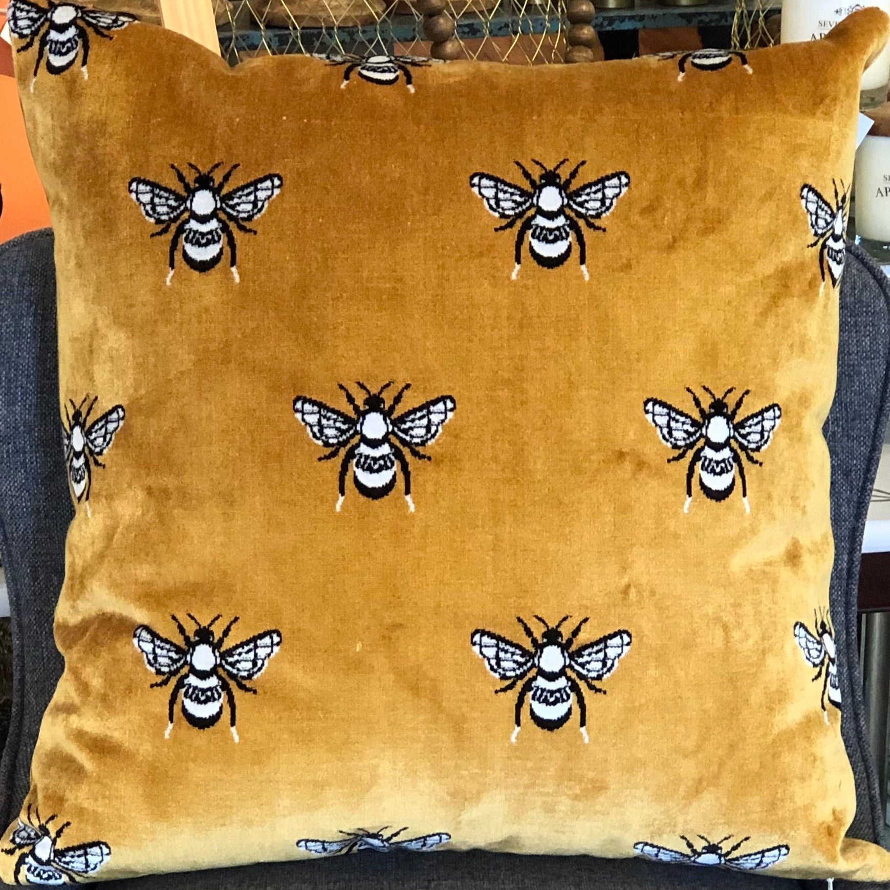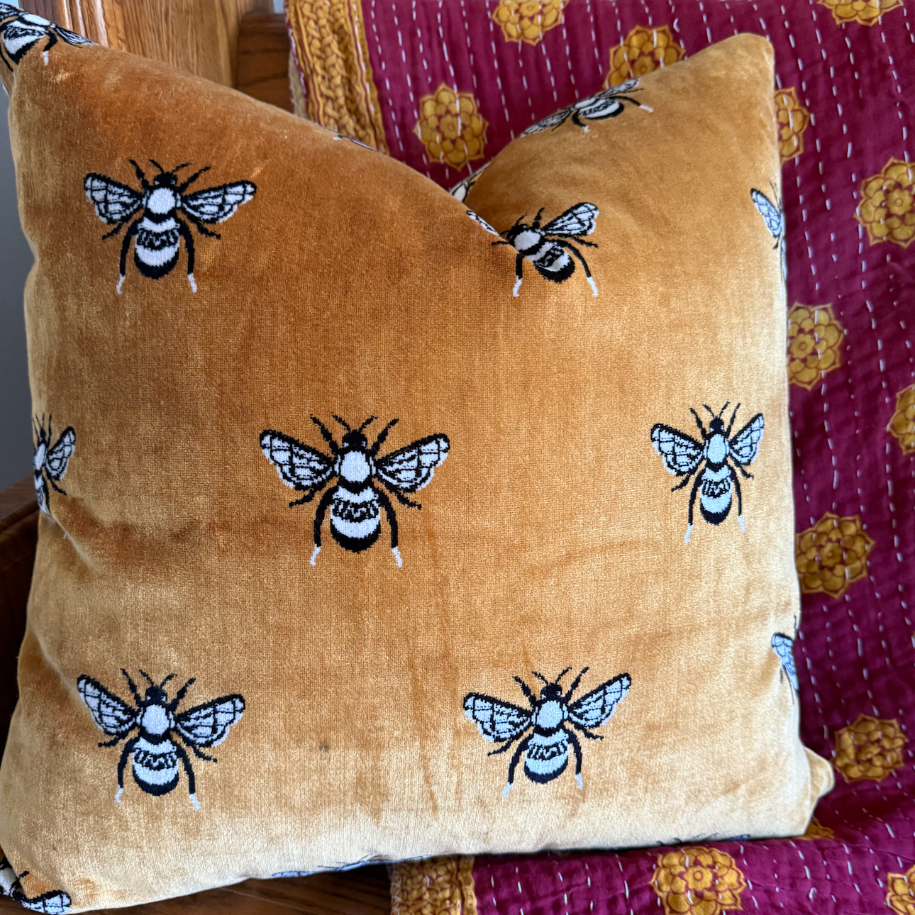 Throw Pillow: Velvet Bee 22” x 22” by Honey Bee Fabrications