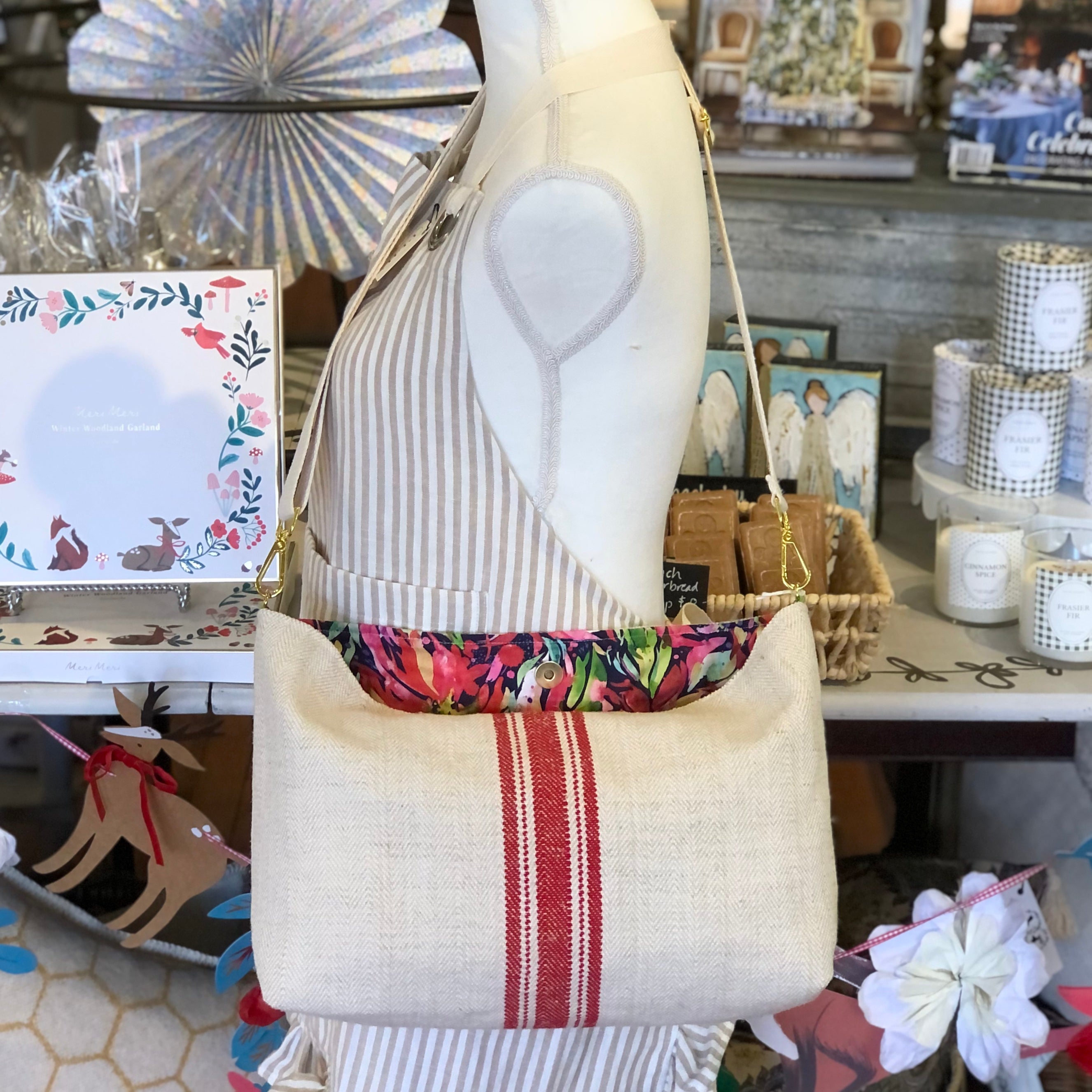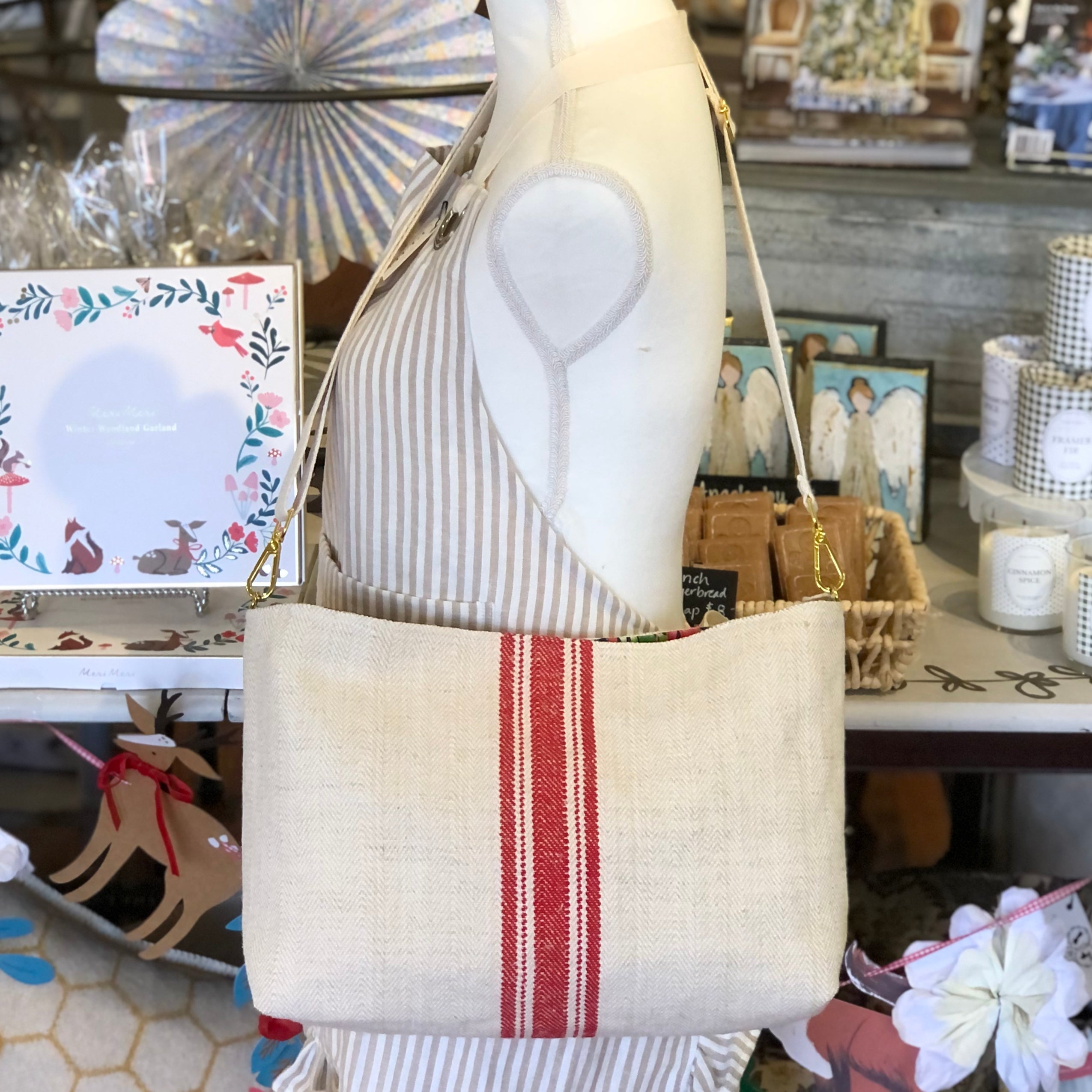 These totes are made locally by The Tuckered Elephant from beautiful, authentic, European grain sacks dating back to the early 1900s.