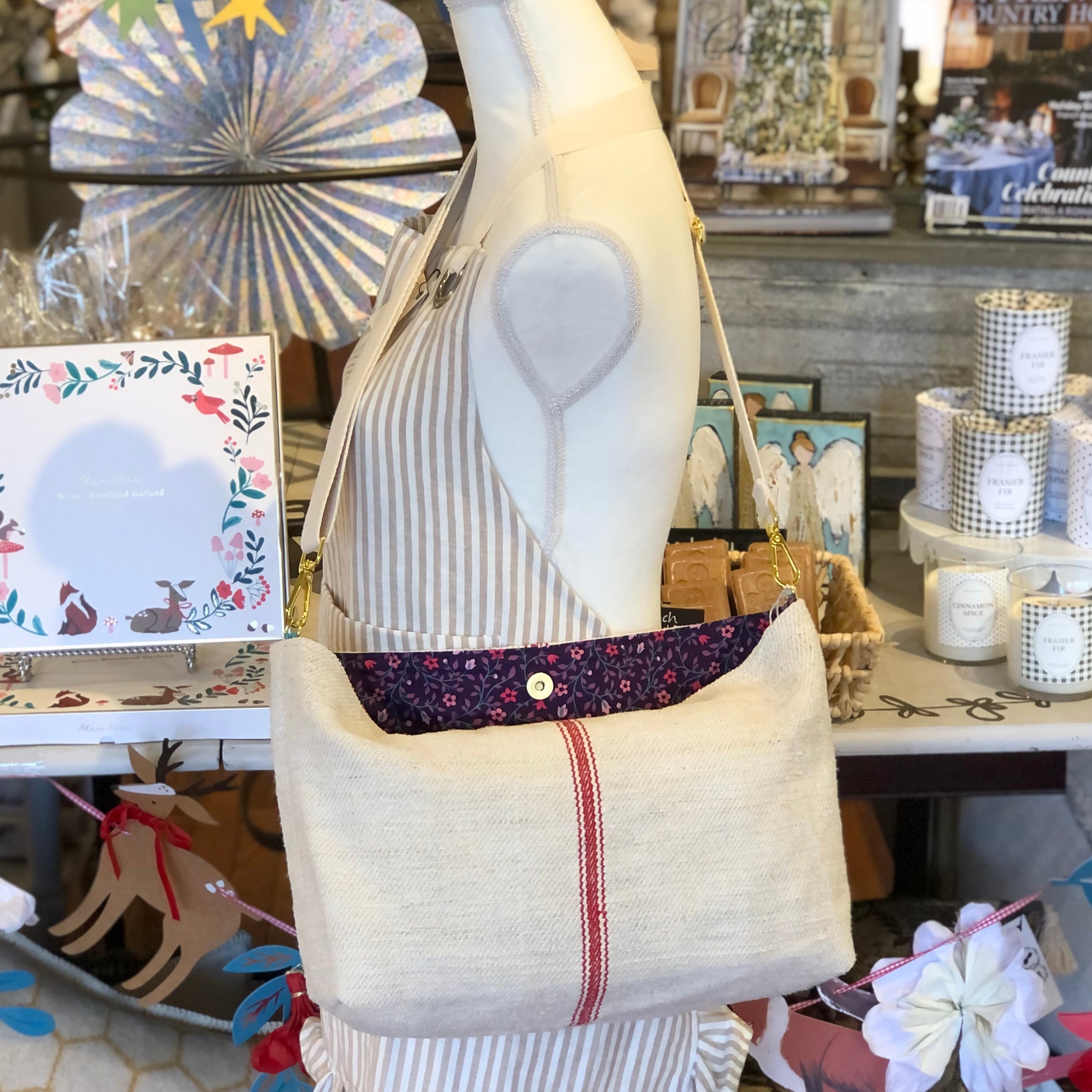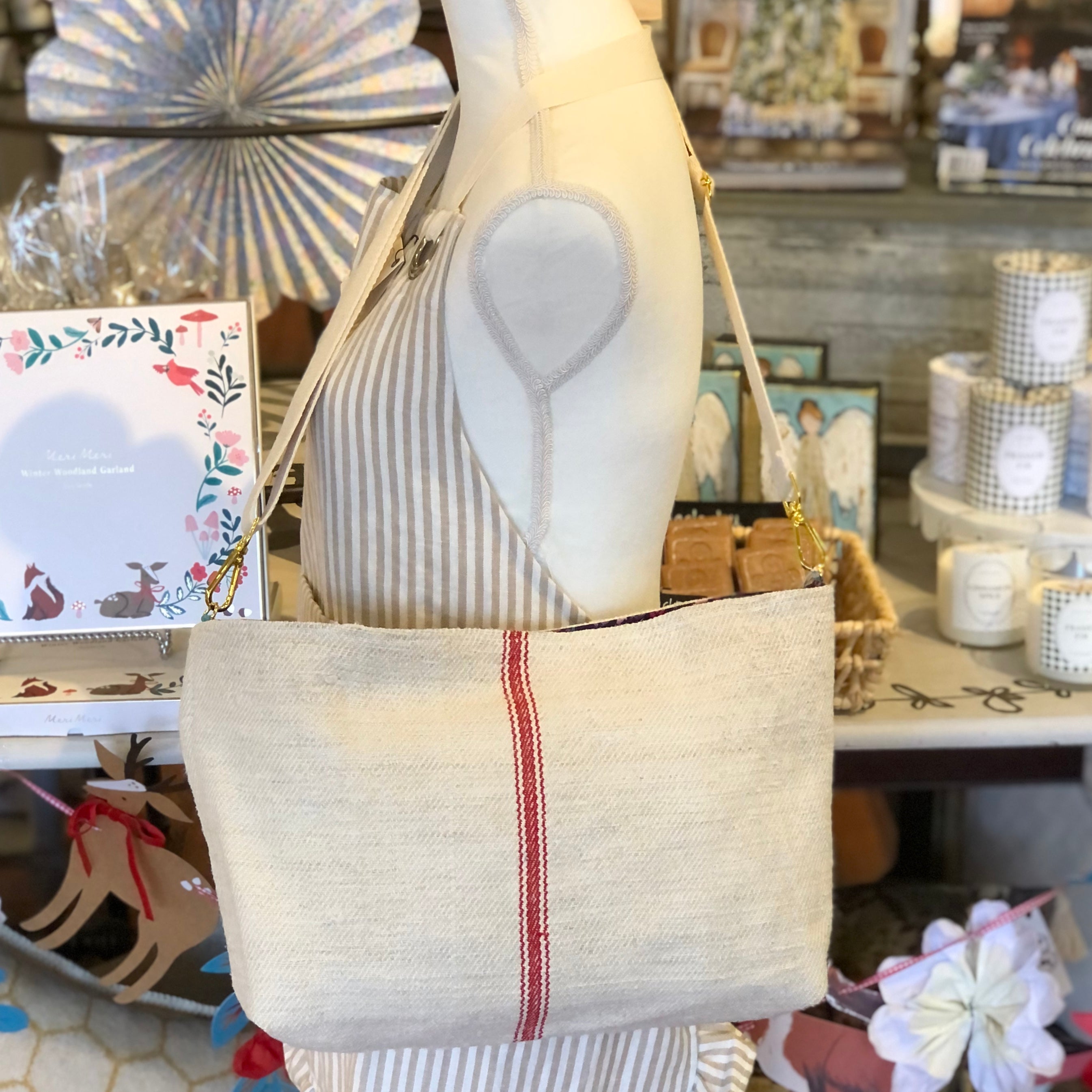 These totes are made locally by The Tuckered Elephant from beautiful, authentic, European grain sacks dating back to the early 1900s.