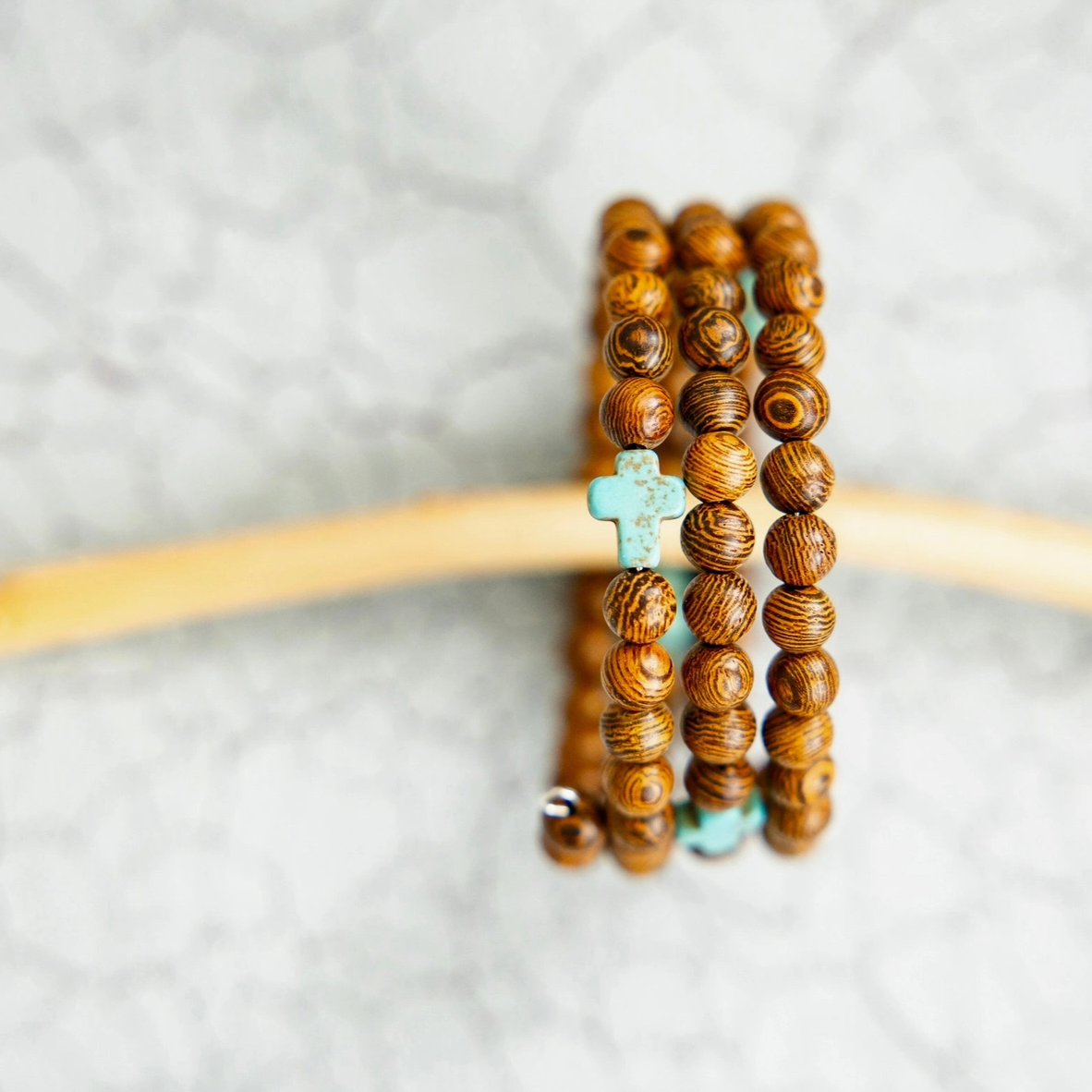 Wood Bracelet with Turquoise Cross by Rahab's Rope
