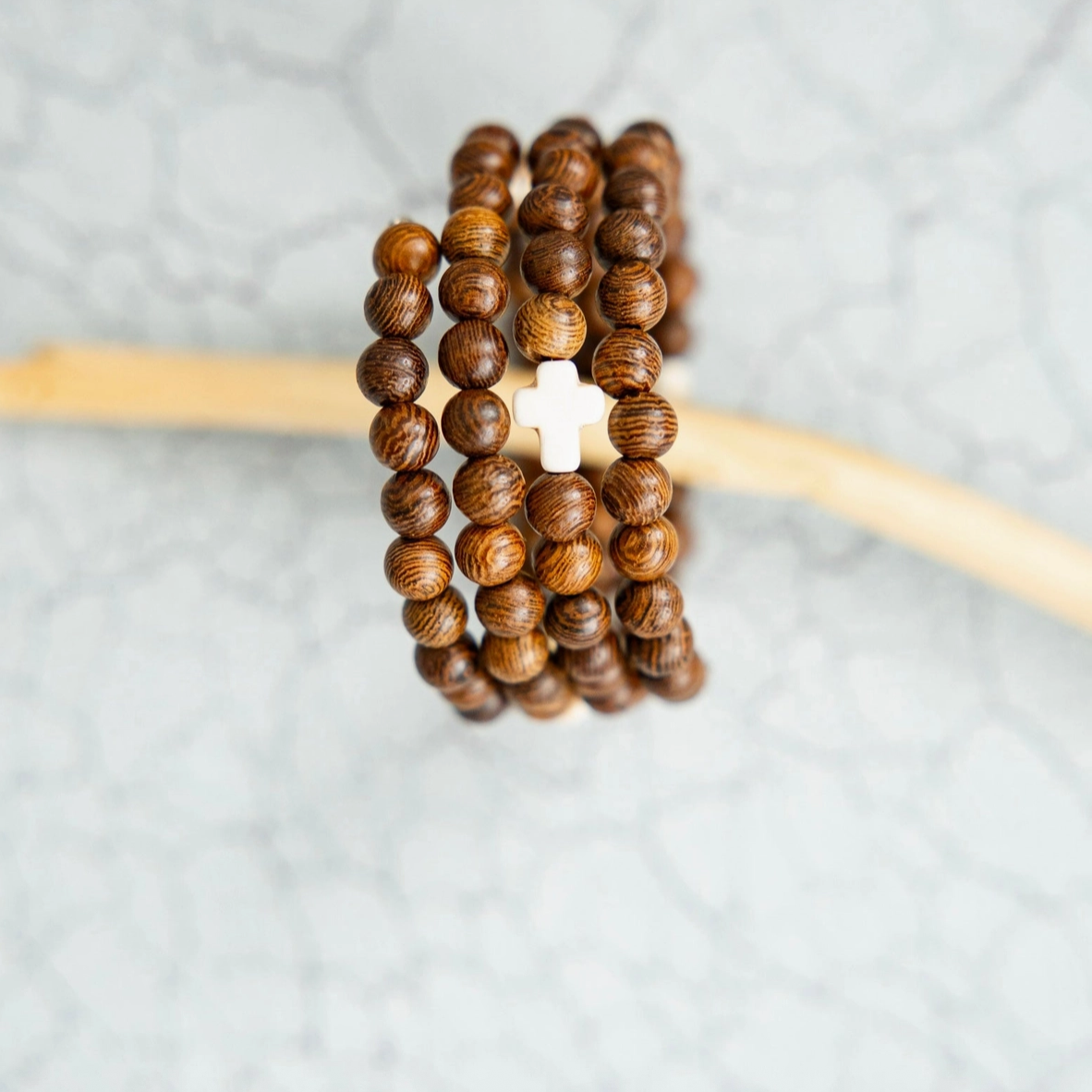 Wood Bracelet with White Cross by Rahab's Rope